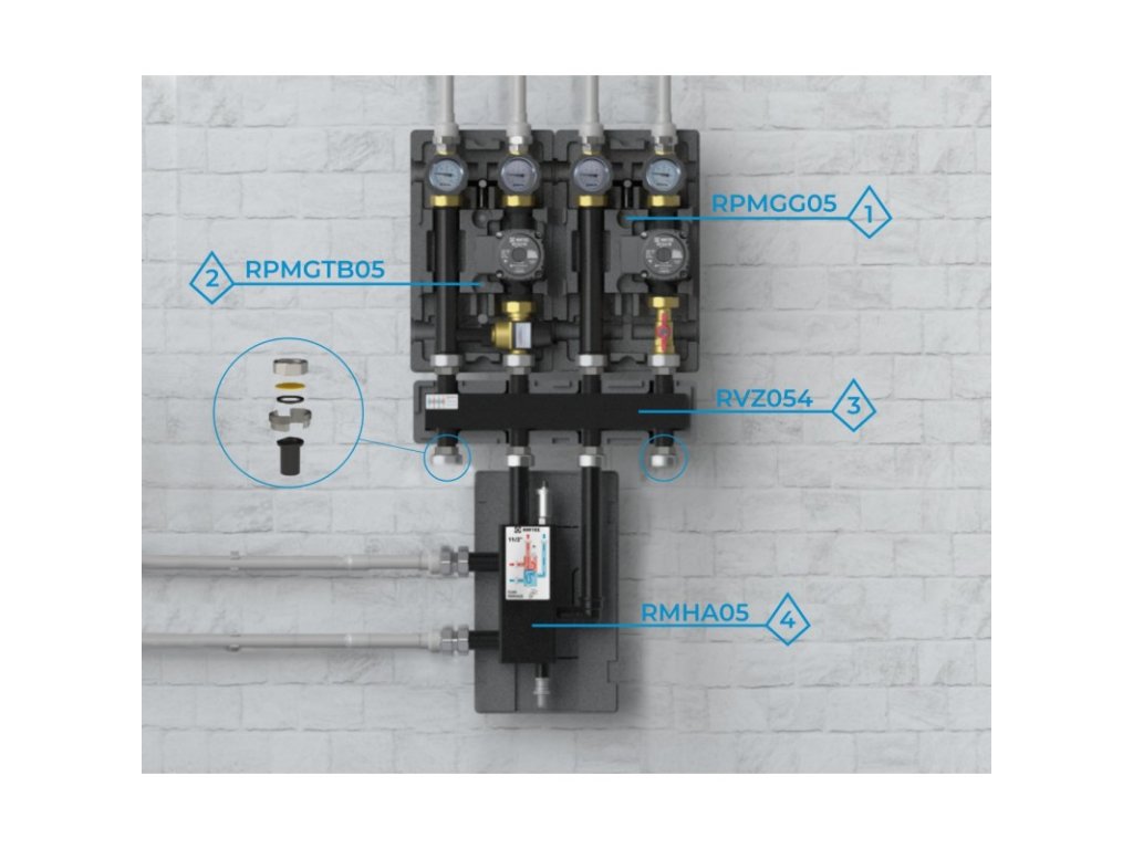 Hydraulický oddělovač - hydraulická šipka, je určen k oddělení několika hydraulických okruhů spotřebičů a topného okruhu kotle.