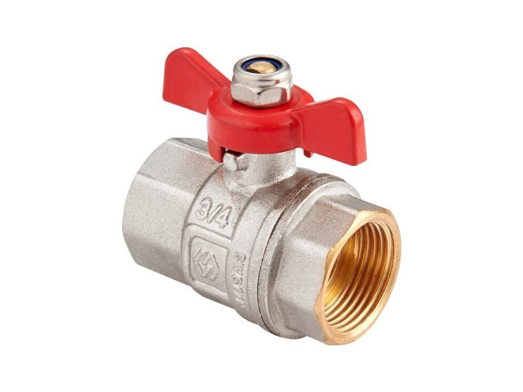 Mosazný kulový kohout motýl 1/2″ FF s poniklovanou povrchovou úpravou