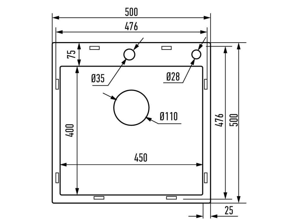 Rozměry: ergonomický design s optimální velikostí vany 500 × 500 mm, vhodný i pro větší nádobí.