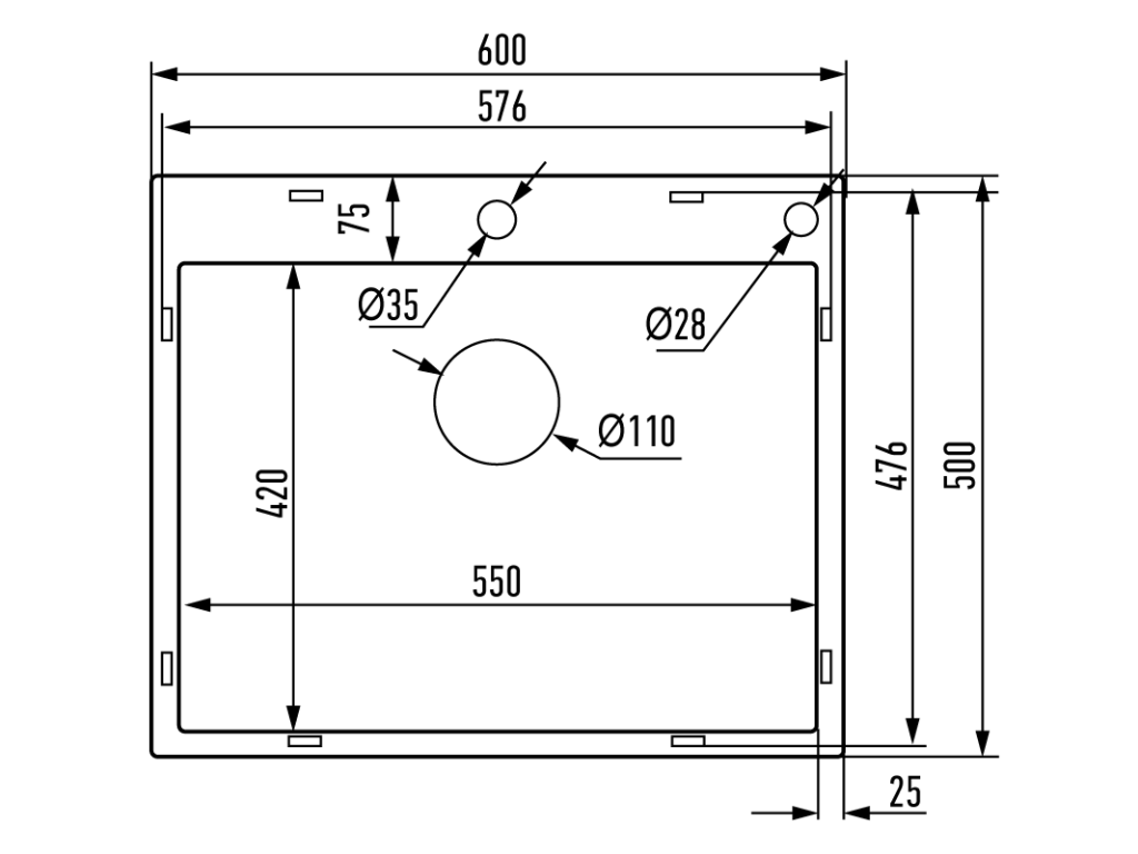 Rozměry: ergonomický design s optimální velikostí vany 600 × 500 mm, vhodný i pro větší nádobí.
