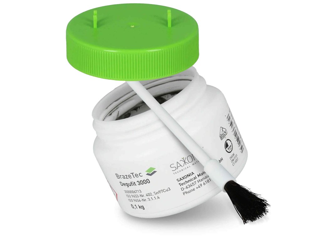 Pasta Sn97Cu3, 100g je bezolovnatá pájecí pasta s obsahem 97 % cínu (Sn) a 3 % mědi (Cu), určená pro měkké pájení zejména měděných, mosazných a bronzových komponentů v systémech pitné vody a topných rozvodů. Běžně se používá pro spoje trubek, tvarovek a přechodů, kde zajišťuje pevný