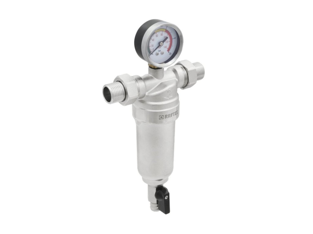 Samočistící mechanický filtr RMHF02 3/4″ (RAFTEC) je robustní mosazný filtr pro horkou vodu, umožňující čištění sítka bez demontáže díky drenážnímu kohoutu a přehledu tlaku pomocí manometru.