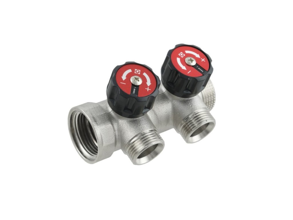 Sanitární rozdělovač 1″ × 3/4″ 2-cestný – mosaz