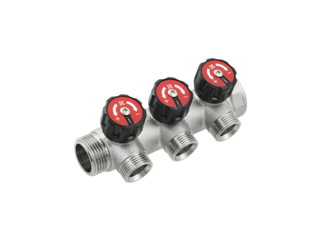 Sanitární rozdělovač 1″ × 3/4″, 3-cestný (RAFTEC) je odolný mosazný rozbočovač z materiálu CW617, navržený pro efektivní rozdělení vodovodního přívodu do tří samostatných okruhů.