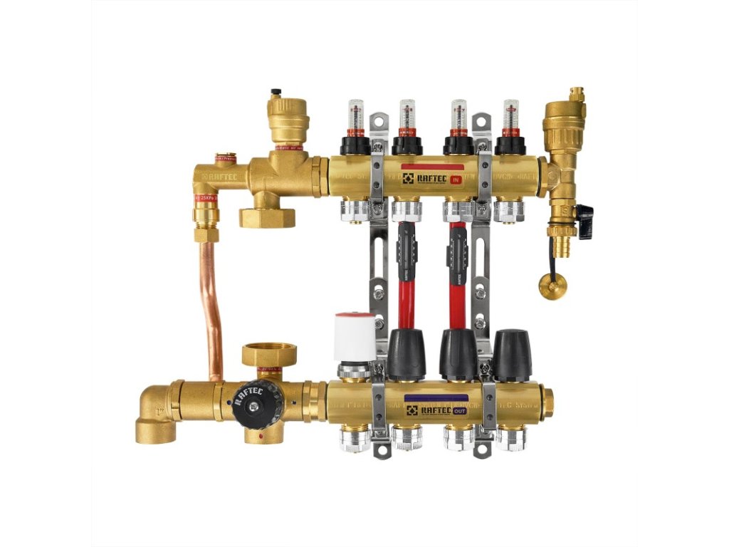 Čerpadlo-směšovací jednotka RAFTEC Warm Floor LSG-161H je určena pro tvorbu nízkoteplotních topných systémů (typu "teplá podlaha"). Je namontován na kolektorové skupině nízkoteplotního okruhu a připojen k vysokoteplotnímu okruhu topného systému. Zajišťuje stálou cirkulaci chladicí kapaliny v okruhu pro dosažení rovnoměrného ohřevu podlahy a komfortního vytápění. Čerpací-směšovací jednotka plní funkci přípravy chladicí kapaliny požadované teploty a její přivádění do rozdělovacího potrubí (hřebenu). Čerpadlo-směšovací jednotka je uzpůsobena pro společné použití s distribučními kolektory smyček podlahového vytápění se středovou vzdáleností kolektorů 210 mm.