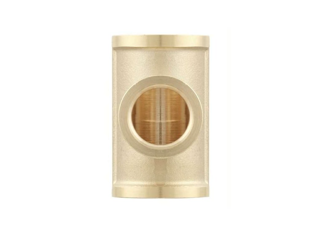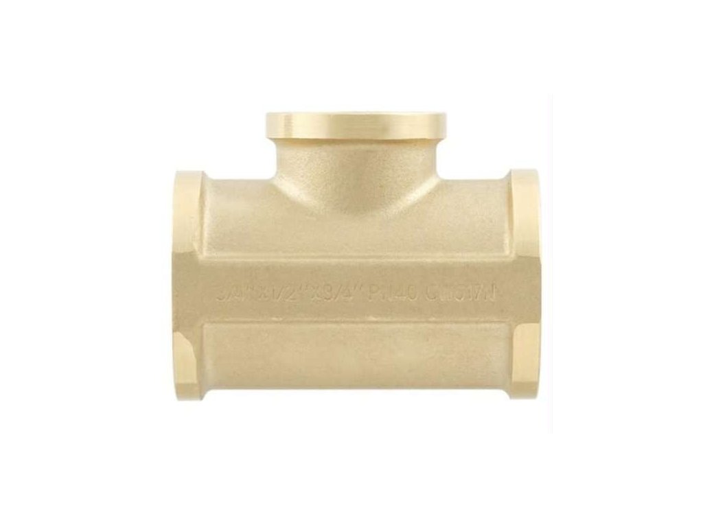 Mosazný silnostěnný redukovaný T-kus 3/4" × 1/2" × 3/4" je trojcestná závitová tvarovka se třemi vnitřními závity G, určená pro spojení tří potrubních větví různého průměru. Větve 3/4" tvoří přímý průchod, odbočka má menší průměr 1/2". Vyrobena z kvalitní mosazi CW617N, vhodná pro systémy vody, topení a plynu.