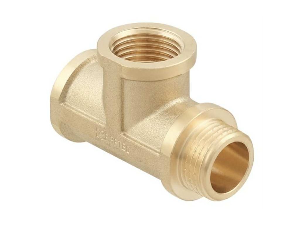 T-kus mosazný silnostěnný 1/2" FFM, GOLD je závitová mosazná tvarovka ve tvaru T. Umožňuje rozbočení nebo propojení potrubí do tří směrů. Vyroben z kvalitní mosazi CW617N, vhodný pro použití v systémech vody, plynu i vytápění.
