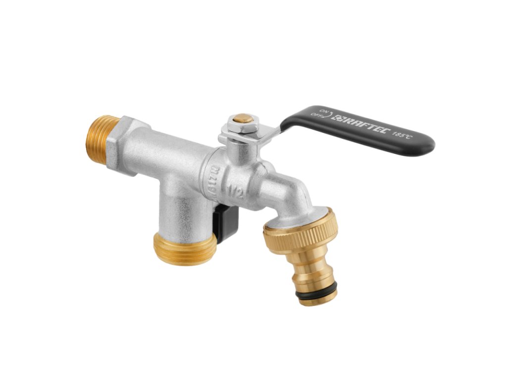 Zahradní kohout kulový vnější závit 1/2″ s dvojitým připojením je mosazný pákový ventil pro venkovní použití, vybavený dvěma vývody 3/4″ s nezávislými pákovými uzávěry. Umožňuje zároveň napojení hadice i přístup k vodě pro další použití.